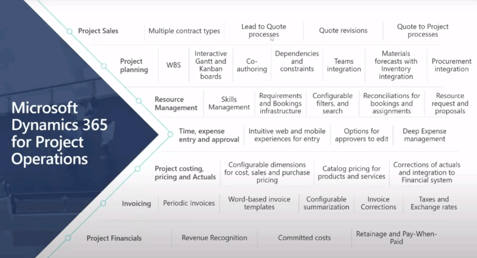 Dynamics 365 项目运营解决方案统一了操作流程,以提供可视化,协作和洞察力,以推动从销售到财务的整个团队取得成功。Dynamics 365项目运营将销售,资源,项目管理和财务团队连接到一个应用程序中,从而赢得更多交易,加快交付速度,赋予员工权力并最大化利润。