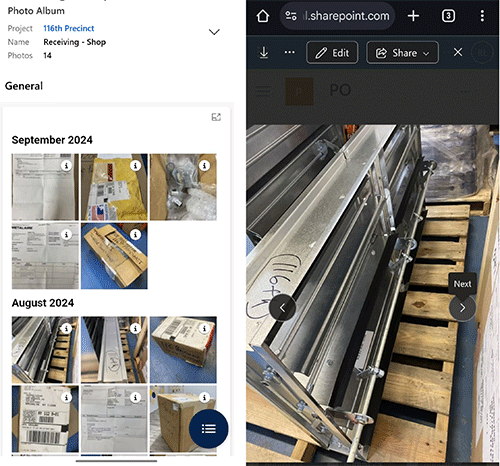 在风管项目中,使用照片展示已完成的工作或突出显示现场问题,可以节省数十封电子邮件和无数小时的来回解释时间。我们在移动端内置了易于使用的照片提交和控制工具。主要功能点包括: