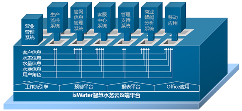 isWater 智慧水务解决方案支持灵活的应用程序扩展和整合,通过引入解决方案,呼和浩特市自来水公司实现了客户信息、水表信息、水量信息、水费信息、管网信息、生产信息、水质信息、源水信息等跨界、跨应用的信息共享,帮助自来水公司彻底打破企业内部的信息孤岛。