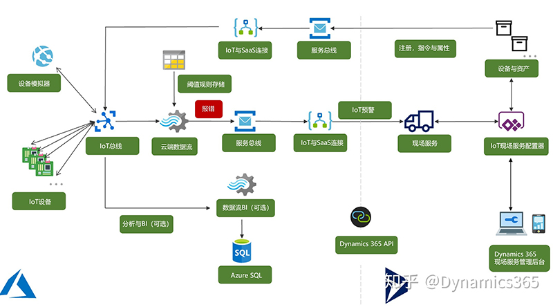 Connected Field Service是一个支持IoT的插件,对应到需要被监控的客户资产,同时连接到云端的Azure IoT进行数据流管理,接收IoT警报并启动服务订单的创建。