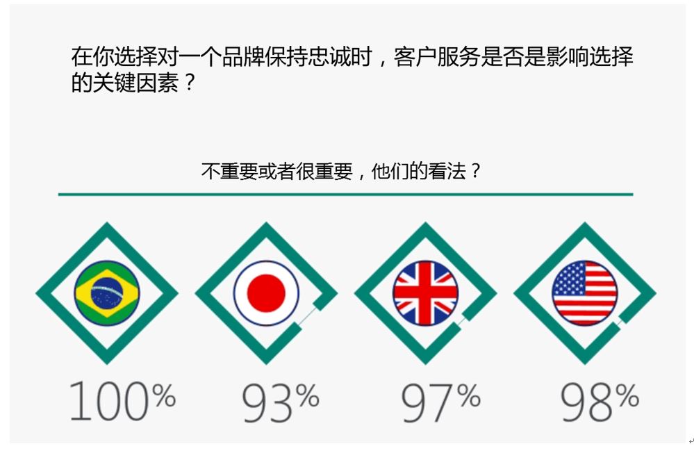 。通过这次调查,我们神奇地发现虽然全球各地客户因文化、地域、服务体系、社会构架等而导致很大的差异性,不过在客户服务方面,却存在着惊人的相似性。