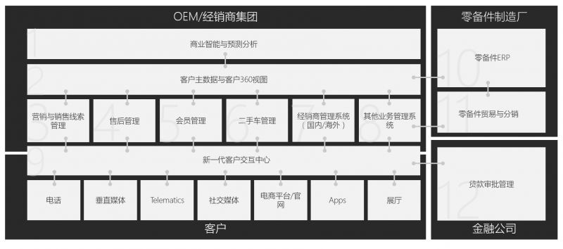 通过微软Dynamics CRM平台将社交媒体、官网、4S门店、车展等活动中采集到的客户信息进行分析,可以通过客户360度视图深度洞察客户需求,提升服务质量和销售效率,将客户CRM 系统和呼叫中心紧密结合,确保KPI考核落地,促进了销售线索到结单效率。