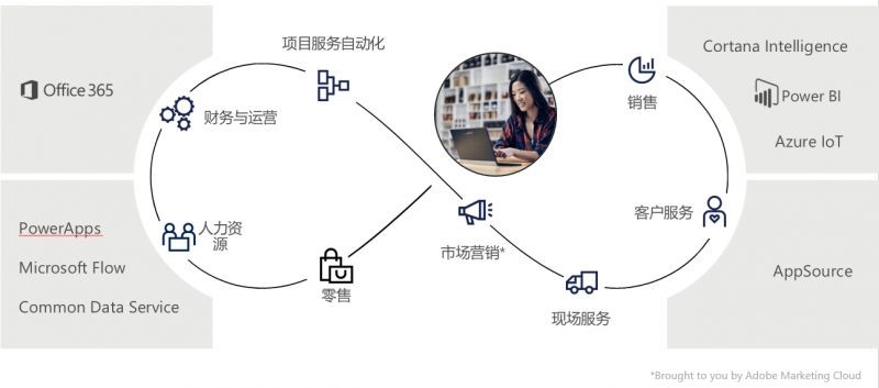 微软 Dynamics 365 新一代智能商业应用,通过通用数据服务(Common Data Service)实现CRM\ERP底层数据平台数据互通,帮助汽车行业从生产环节到库存、物流、销售、售后服务环节的全流程数据打通,满足汽车制造厂商的系统规划,提供最优的商业解决方案。