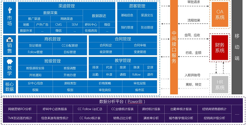 · 通过建立客户数据库,以及销售渠道管理、销售生命周期管理,打通各个接触点渠道的客户信息,并通过数据分析采用不同类型的个性化营销方法,最大化发掘吸引潜在学员,降低学员流失率。